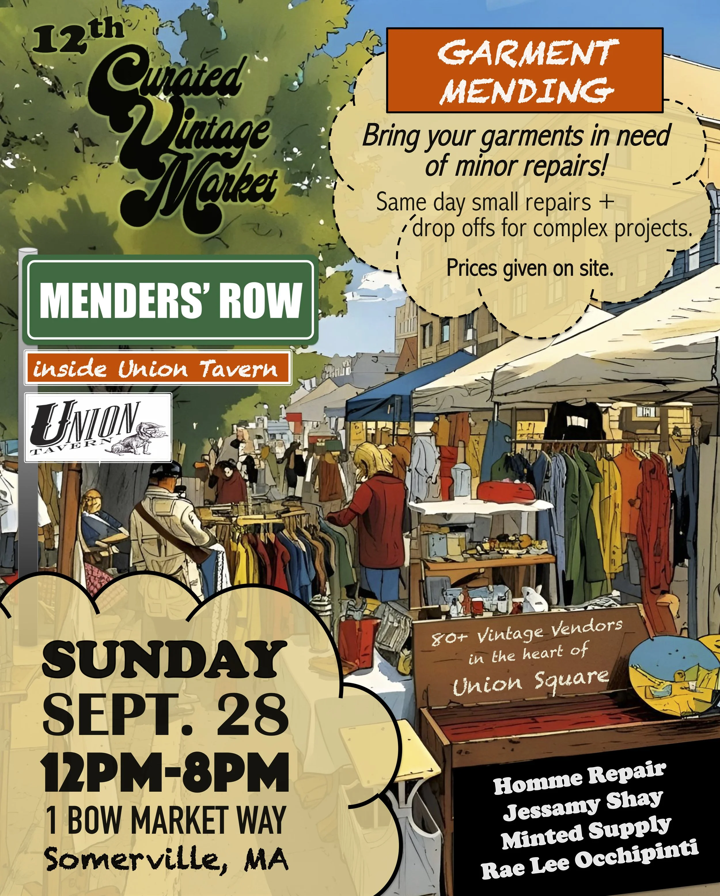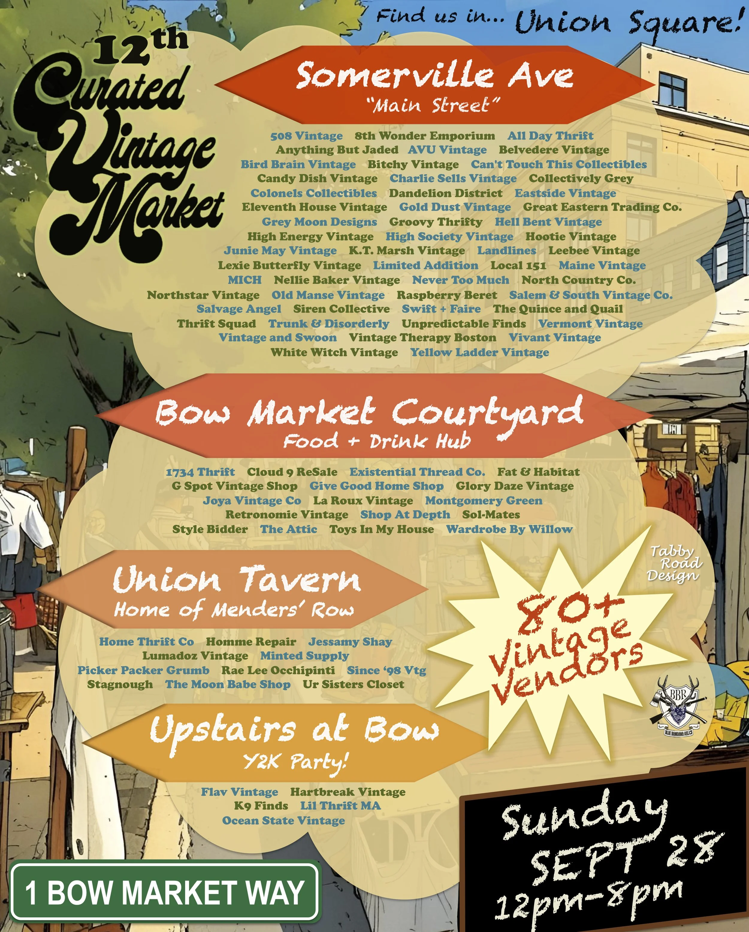 We'll see you on Sunday, September 28th as we return to our home field for our 12th Curated Vintage Market! This year we are taking over Somerville Ave, Bow Market + Union Tavern w/ over 80 vintage vendors from New England + beyond. Don’t miss this gathering of greats bringing the best & baddest vintage finds to the heart of Union Square, Somerville. Hosted by Blue Bandana Relics, Tabby Road Design, Bow Market, Upstairs at Bow & Union Tavern. Check out all the spots HERE.