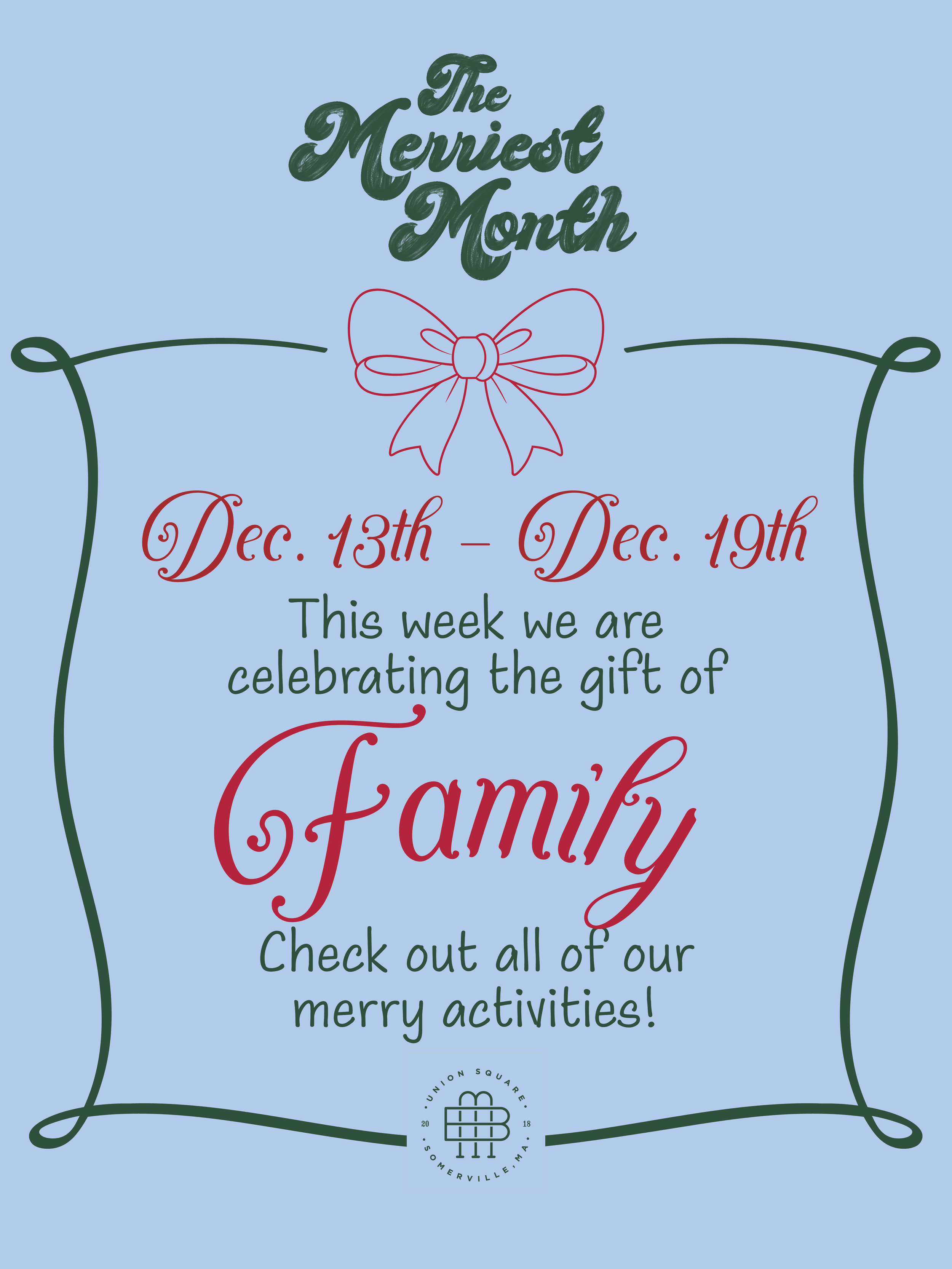 Next week, join us as we celebrate the gift of family this hoilday season. From cherished loved ones to chosen family and our favorite furry friends, this week is all about togetherness.