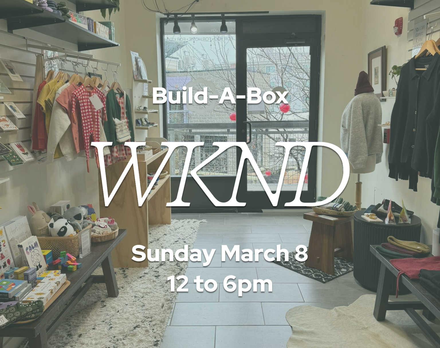 Catch WKND before their pop-up wraps! This Sunday they’re hosting a Build-a-Box event with bubbly drinks and special savings on thoughtfully made goods from independent brands.