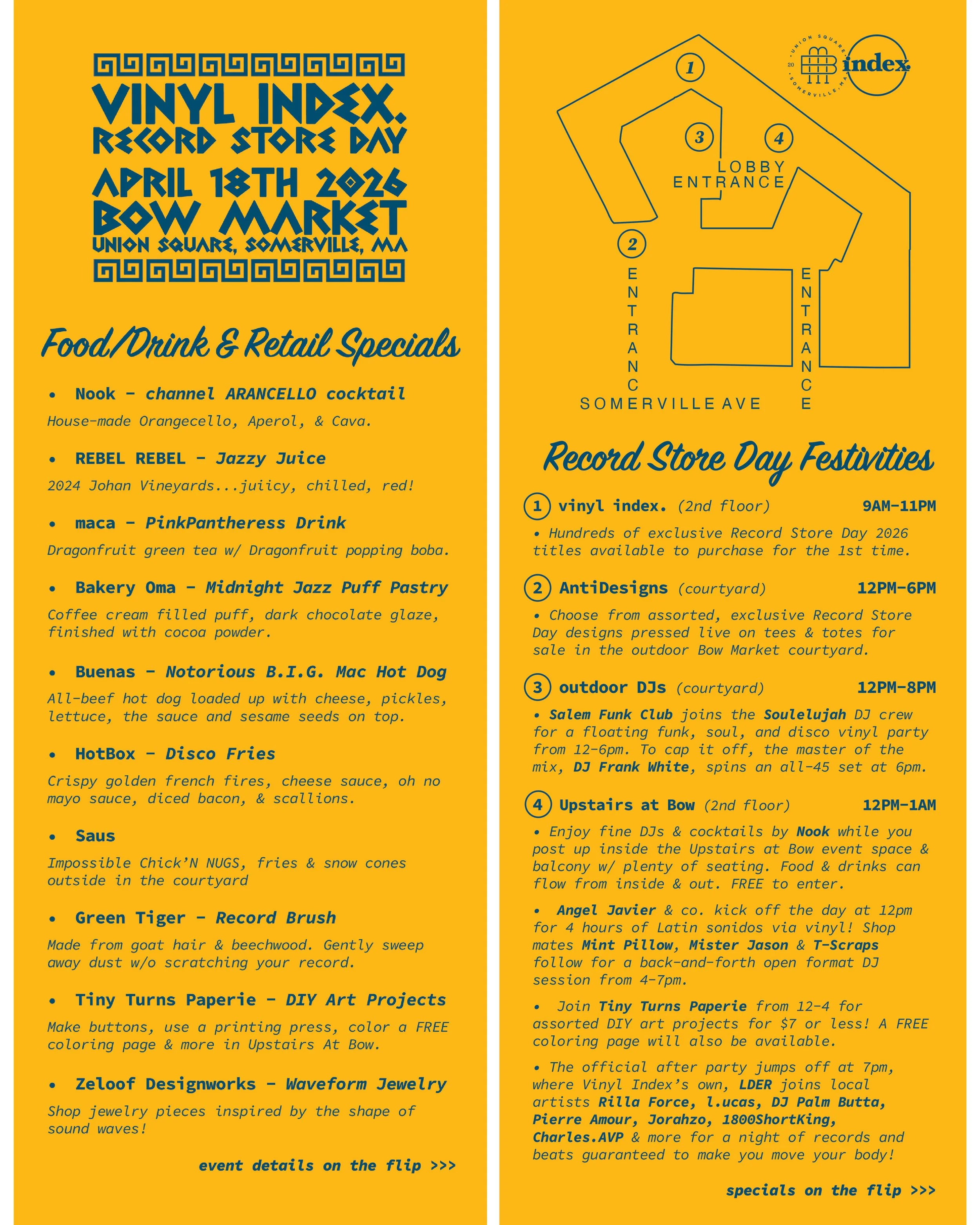 The event is FREE to all. Celebrate your love of music, vinyl, and independent record stores on Record Store Day 2026 w/ Vinyl Index at Bow Market in Somerville, MA!
