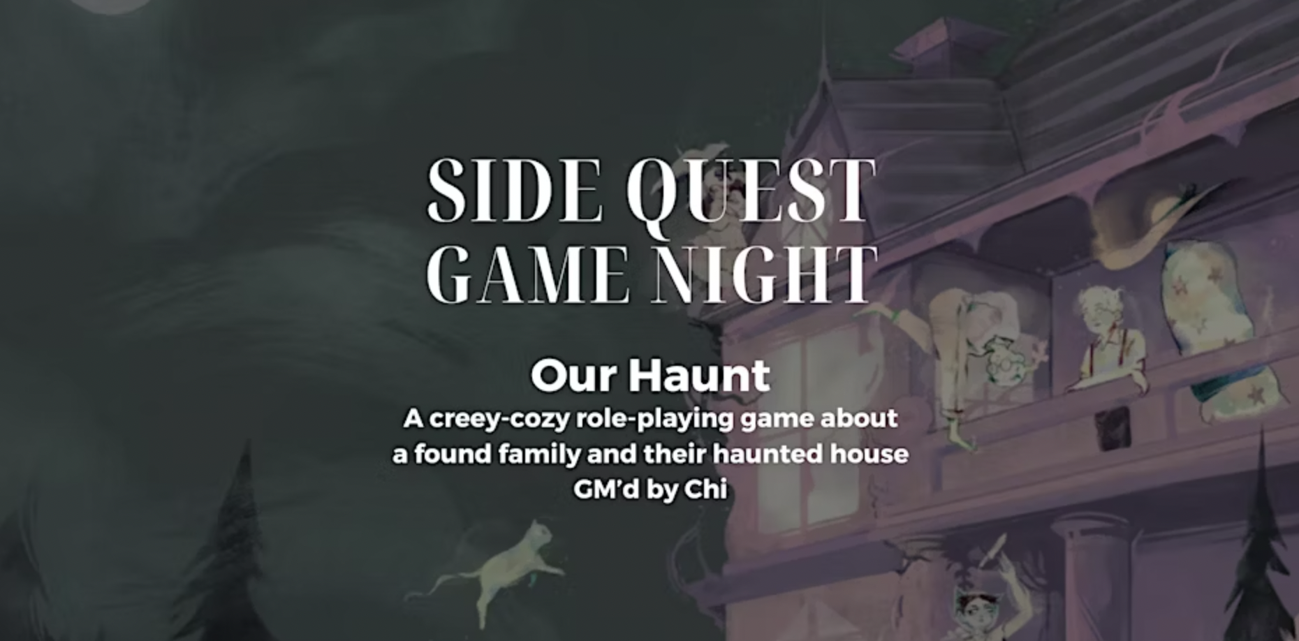 Join GM Chi at Side Quest Books & Games for a session of "Our Haunt", a creepy horror-based RPG.