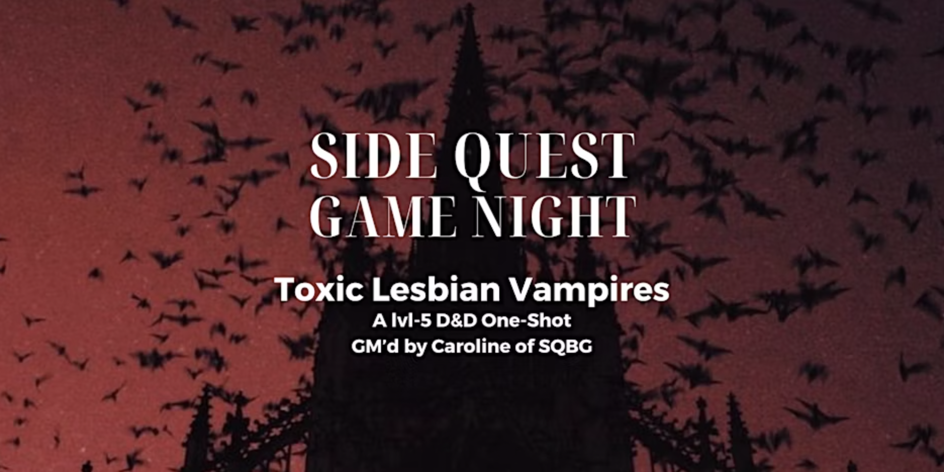 Join indie GM Caroline at Side Quest Books & Games for a level-5 D&D one-shot of "Toxic Lesbian Vampires," inspired by VE Schwab's new book.