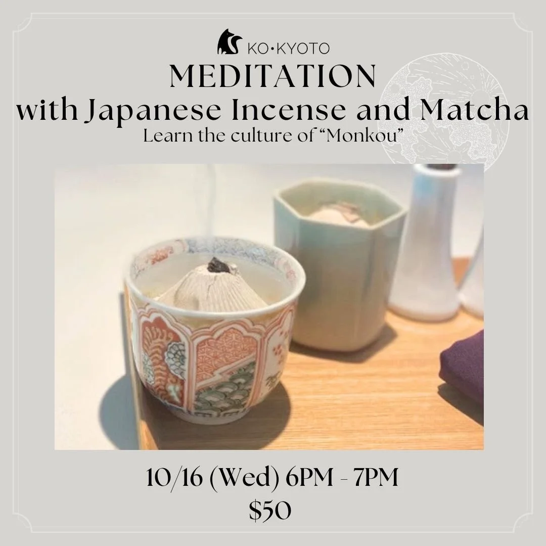 In Japanese, experiencing the fragrance of incense is referred as 聞香 (Mon-kou, literally meaning “listen to the aroma”) . Our owner, Etsuko, will introduce you to the world of incense. Meditate yourself with special incense, and enjoy our high quality matcha as well!