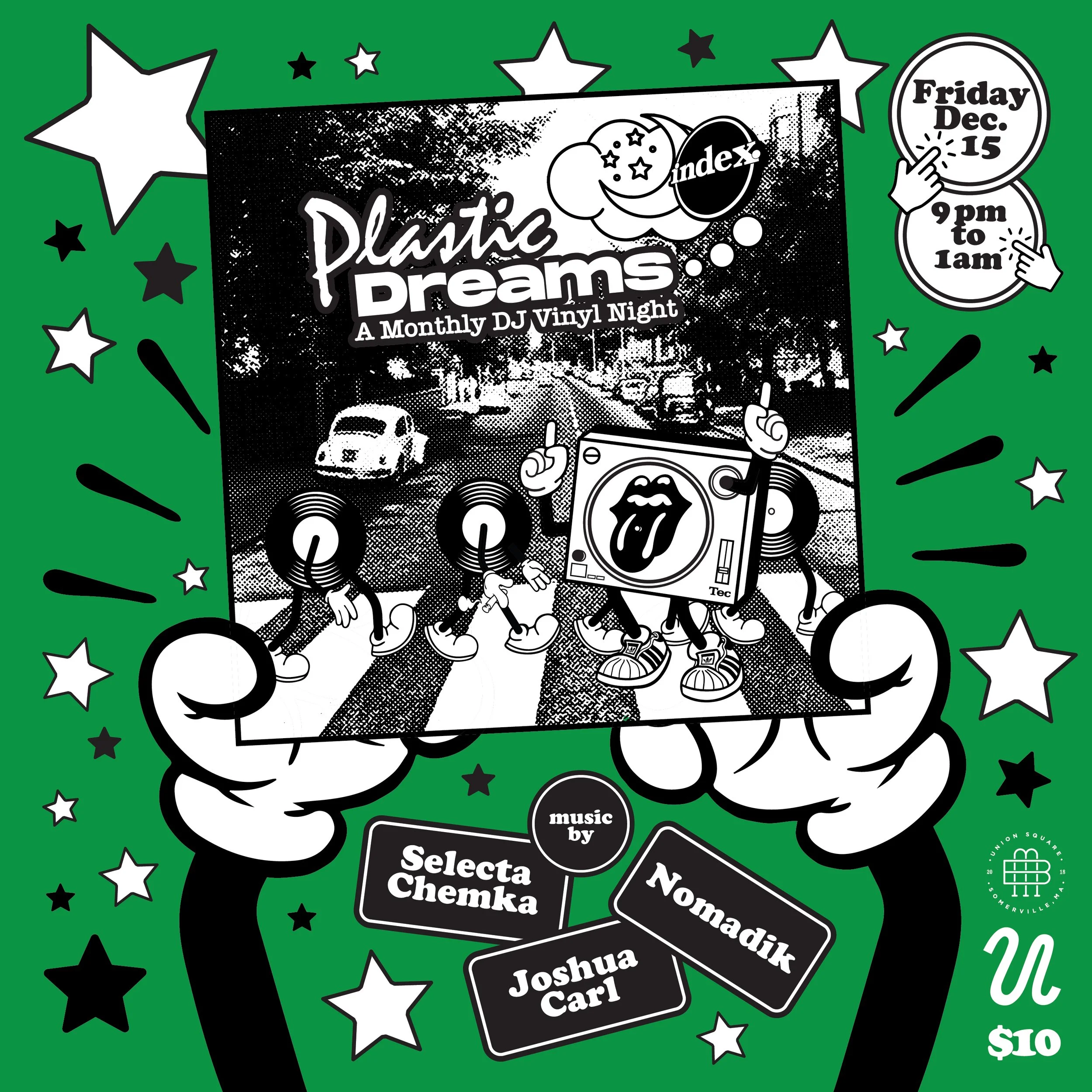 What a year! We’re so lucky to have access to such a beautiful event space to enjoy with all of you wonderful people here in Somerville! Thanks for supporting our vinyl dance party and coming out each month. That said, we’re taking a short a break! We’re gonna hibernate for the winter months and come back stronger than ever in 2024! So join us one last time on Friday December 15th at 9 pm for Plastic Dreams!