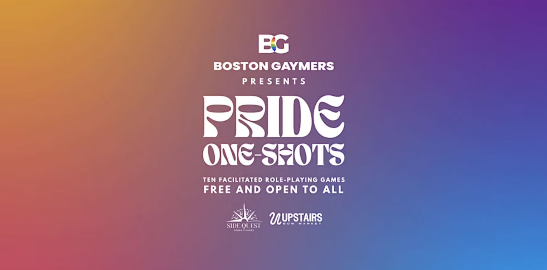 The Boston Gaymers and Side Quest Books and Games are putting together a day of pure queer joy! Join one of ten amazing games, facilitated by local game masters, all in the name of Pride.