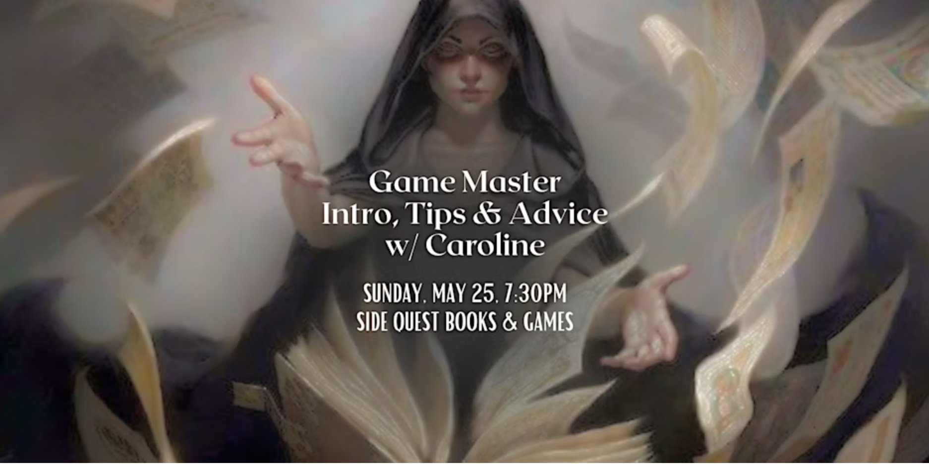 Join Pro GM and Owner of Side Quest Books & Games, Caroline, for an evening of nerdy chats and Q&A about running D&D and other games!