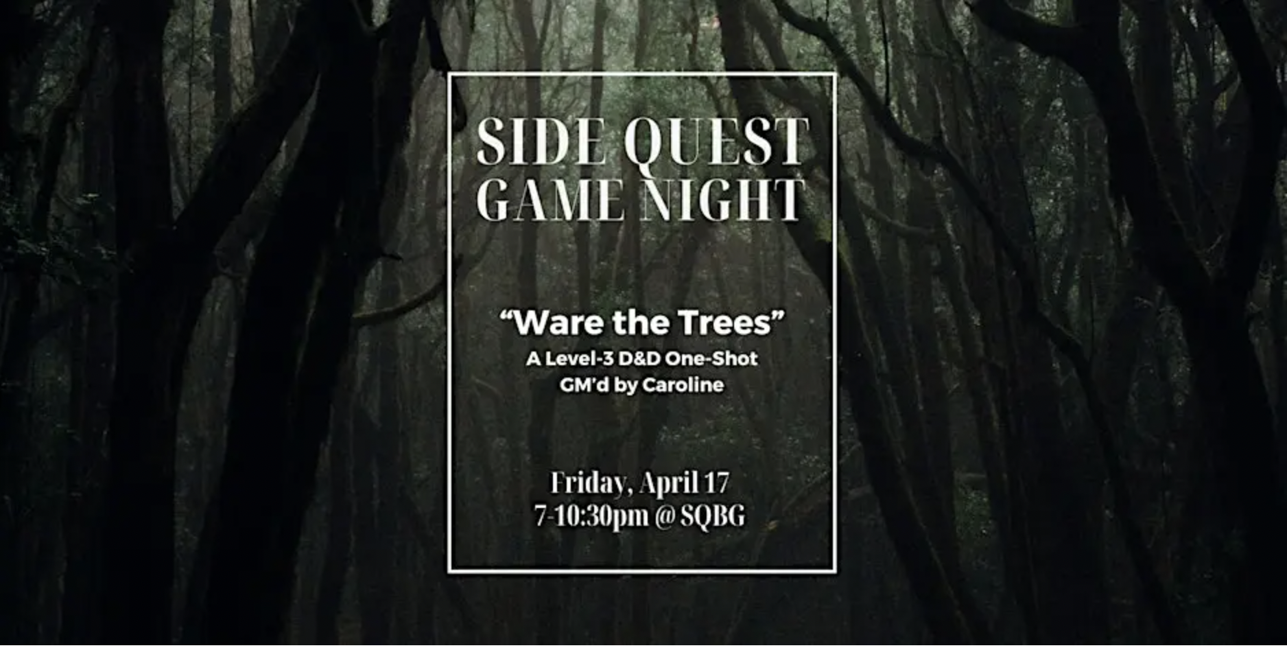 Join the owner of Side Quest Books & Games, Caroline, for a Dungeons & Dragons one-shot of strange plants and mysterious forests.